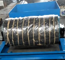 尾部重錘拉緊跑車裝置由改向滾筒螺桿和框架組成裝在帶式輸送機的尾部拉緊力與行程恒定改變行程需人工調節。帶式輸送機是一種摩擦驅動以連續方式運輸物料的機械。為保證 輸送機正常穩定的運行,要滿足驅動滾筒與輸送帶間的摩擦驅動力,這就需要輸送帶具有一定的拉緊力。